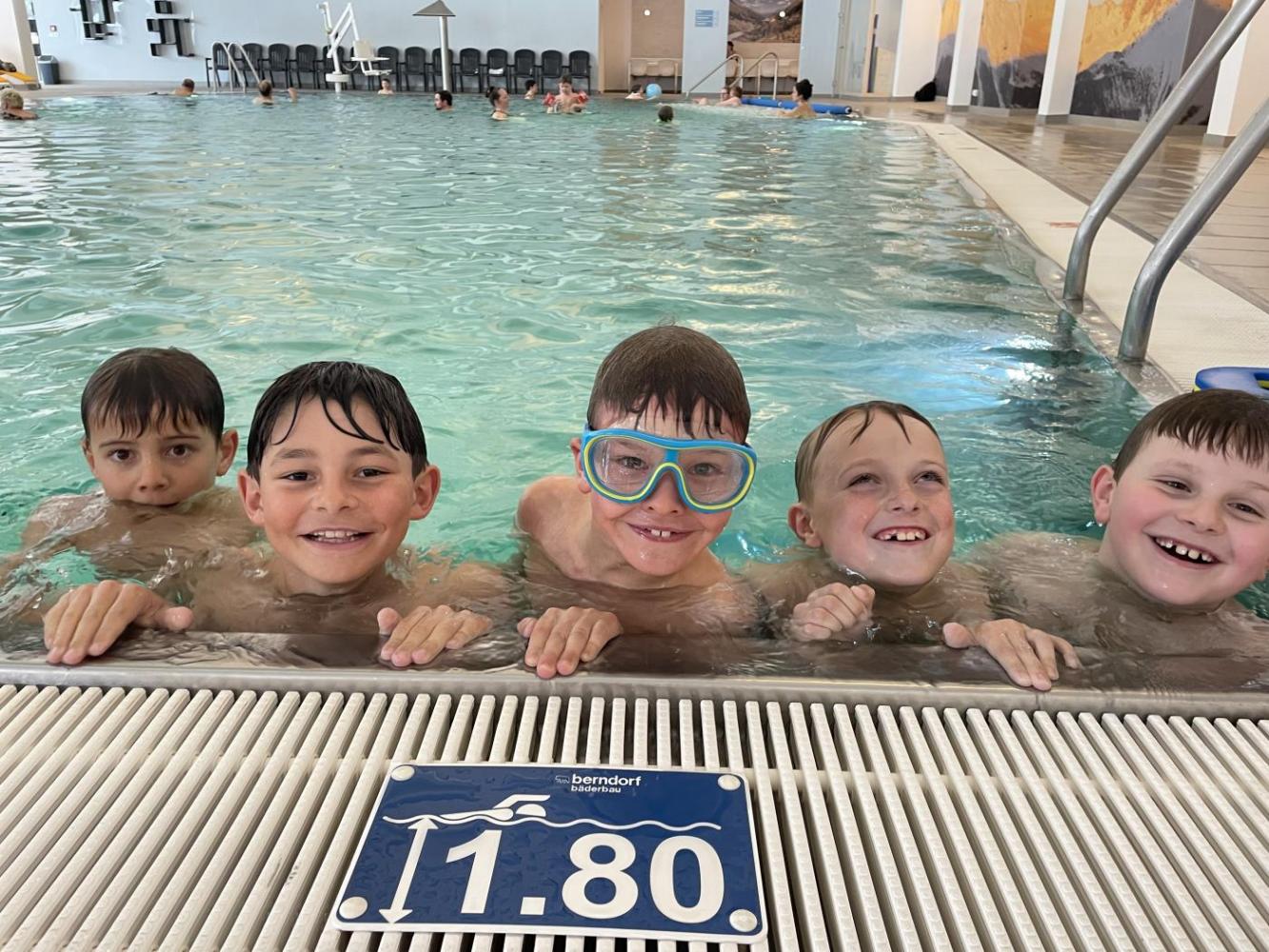 Mit Stolz durften die erfolgreichen Schwimmerinnen und Schwimmer ihre Abzeichen entgegennehmen. Unsere alljährlichen Schwimmtage sind nicht nur ein tolles Erlebnis, sondern zeigen auch, wie wichtig Sicherheit, Bewegung und Selbstvertrauen im Wasser sind.