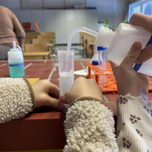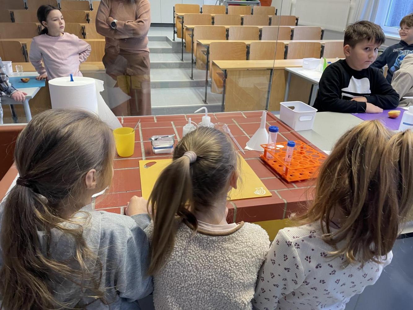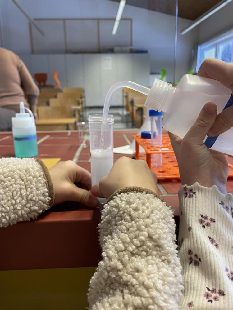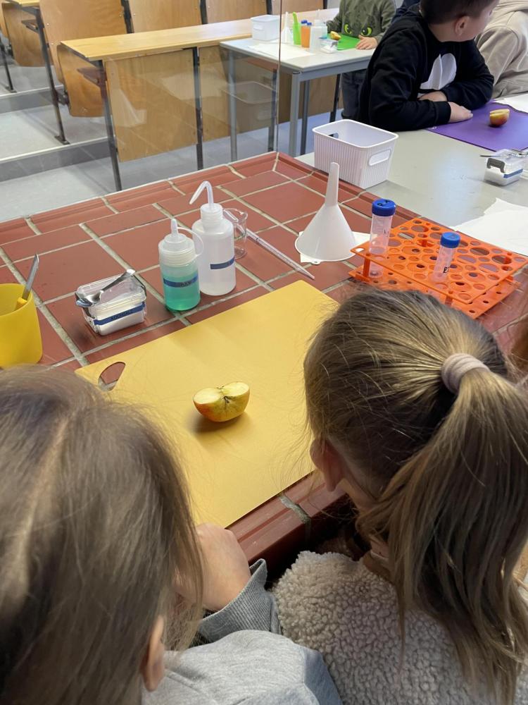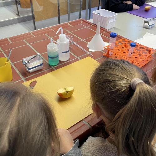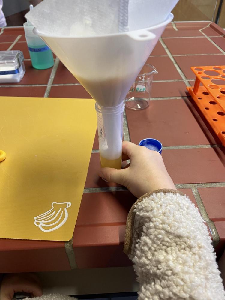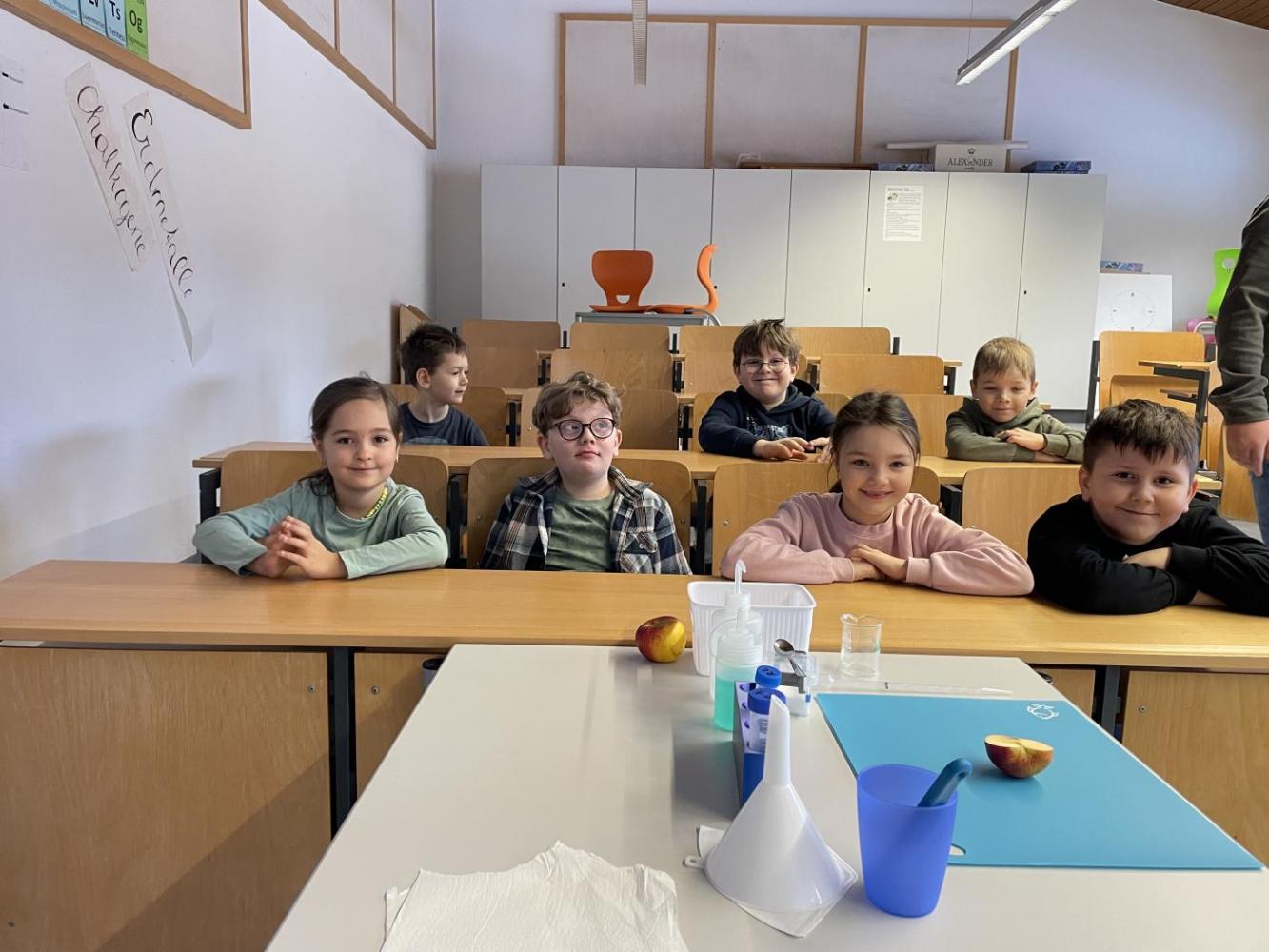 Im MINT LAB durften die Schüler und Schülerinnen selbst experimentieren und machten in einem Versuch Apfel-DNA sichtbar.