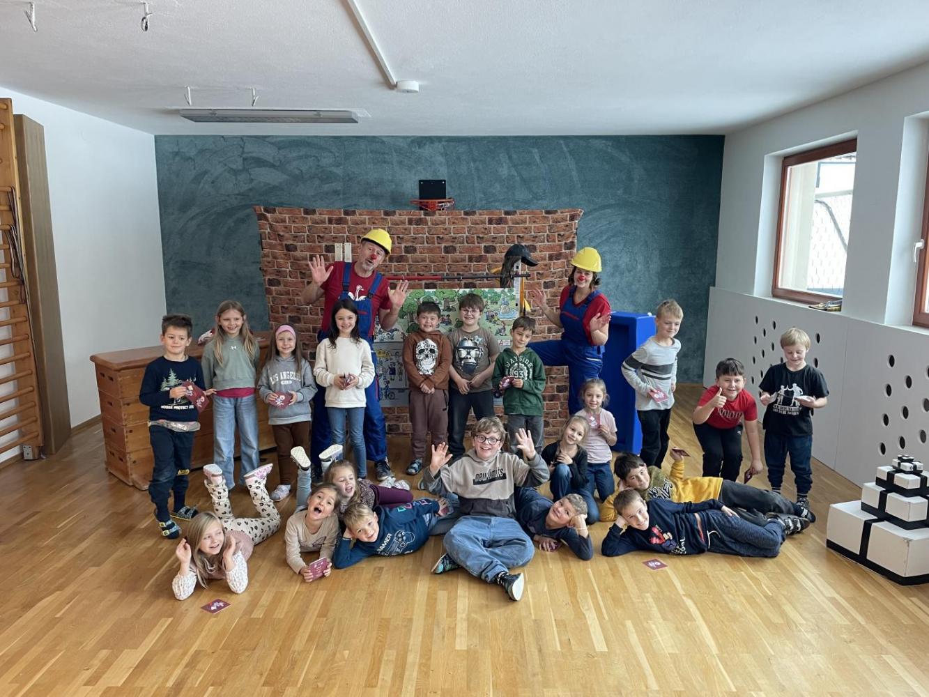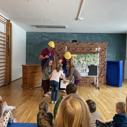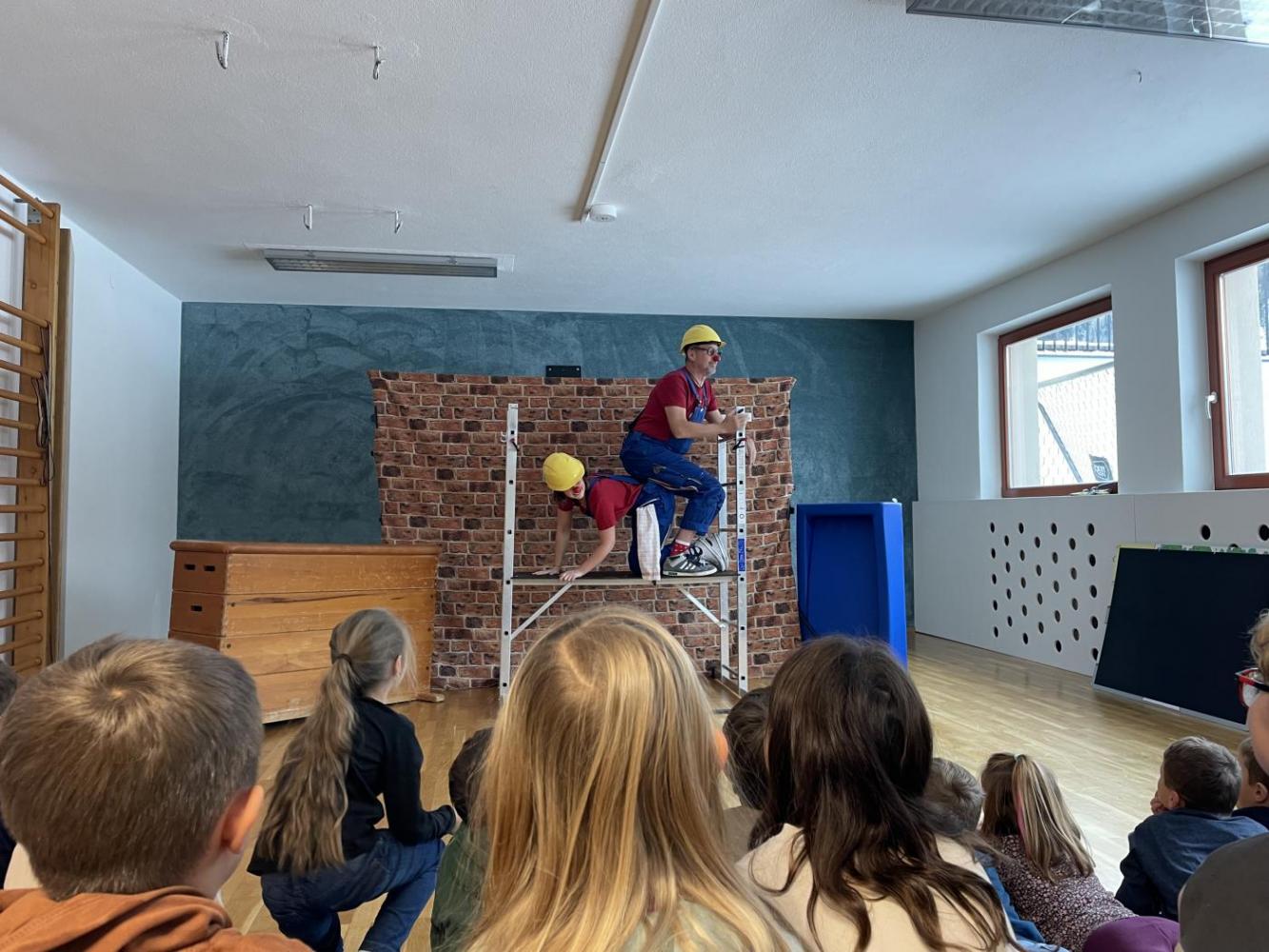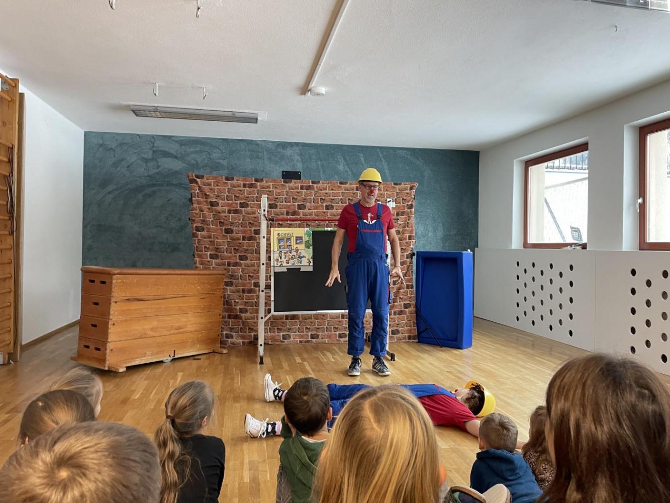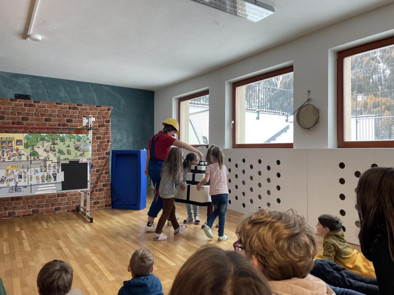 Die zwei Clowns vermittelten spielerisch und mit einer großen Portion Humor grundlegende Erste-Hilfe-Kenntnisse und machten dabei deutlich, wie wichtig es ist, in Notsituationen richtig zu reagieren. Das Theaterstück wurde von viel Gelächter, Staunen und mutigen Momenten begleitet.