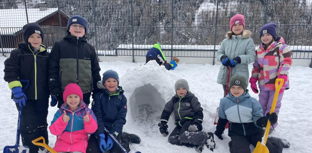 Der Winter ist endlich da und der Schnee macht unsere Kinder richtig glücklich. In den Pausen wird draußen gespielt, gelacht und getobt. Beim Iglu bauen und beim Rutschen im Mösle haben alle viel Spaß und genießen die winterliche Zeit in vollen Zügen.