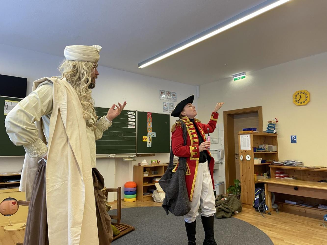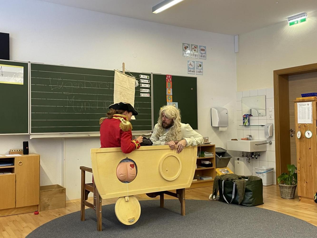 Der Lügenbaron wollte beweisen, dass seine unglaublichen Abenteuer doch wahr sind, und gemeinsam begaben sich die beiden auf eine spannende und sehr unterhaltsame Reise. Die originelle Darstellung begeisterte die Kinder von Anfang bis zum Schluss.